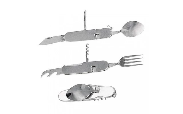 Bestehend aus Messer, Gabel, Löffel, Kapselheber mit Dosenöffner, Stechahle und Korkenzieher.