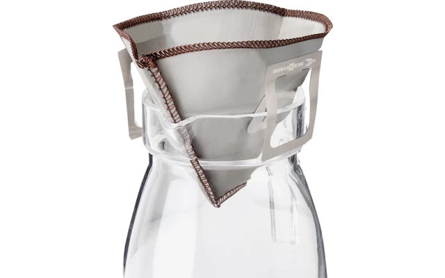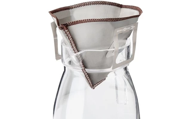 Der Kaffeefilter Amigo ist leicht, faltbar und dank seiner seitlich flexiblen Metallklammern einfach zu befestigen. Wiederverwendbar.