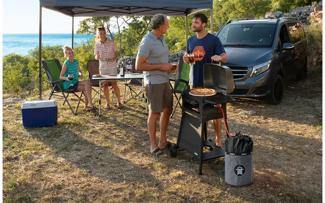 Mit dem neuen Trolley für den Urban Pro bringen Sie den Grillabend ins Rollen. Denn der mobile Gasgrill lässt sich bequem und sicher auf seinem fahrbaren Untergestell bewegen. Im Fahrgestell findet auch die 5-kg-Gasflasche ihren Platz. Angenehmen Arbeitshöhe von 86 cm. Und dank der praktischen, seitlichen Ablageflächen großen Handlungsfreiraum.