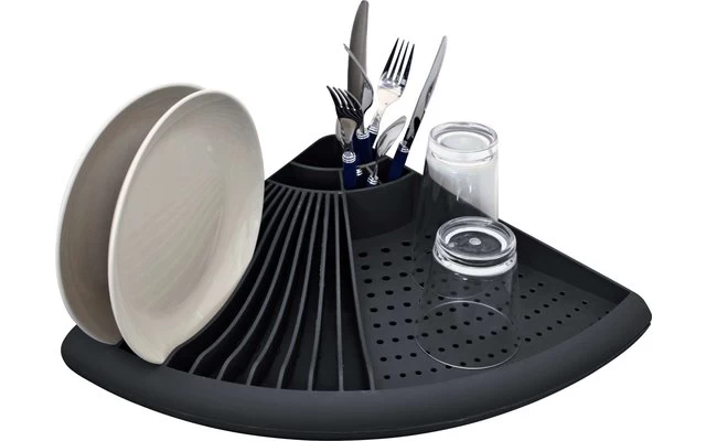 Kann als Geschirrständer und als Abtropfsieb verwendet werden. Besonders platzsparend durch die eckige Form.