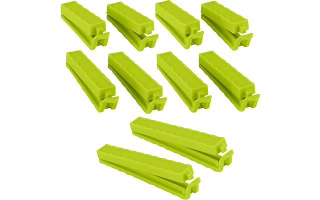 Das unentbehrliche Zubehör für jeden Campinghaushalt. Mit diesen Beutelclips können Sie geöffnete Verpackungen luftdicht widerverschließen. Set bestehend aus 10 Teilen in drei verschiedenen Größen 6/8/11 cm.