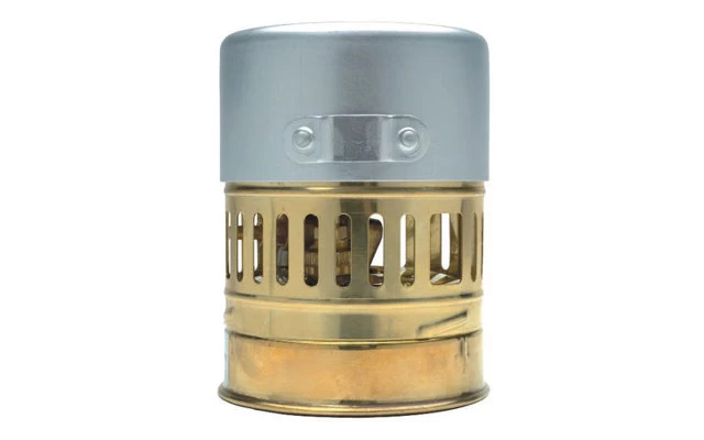 Sein simples Design aus fast schon schusssicherem Messing (nur für Reinbenzin!) macht ihn extrem robust. Die Abdeckung dient gleichzeitig als Kochtopf. Es gibt keinerlei lose Teile, die verloren gehen könnten. Der Spindelgriff ist als Werkzeug für kleinere Reparaturen einsetzbar.