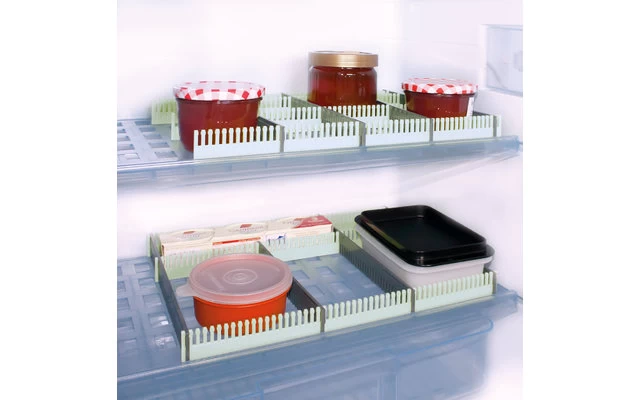 - bruch- und kippsichere Stabilisierung von Lebensmitteln in Kühlschränken