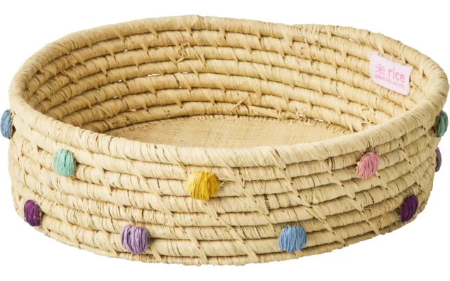 Handgefertigter runder Bastkorb. Hervorragend zum Aufbewahren der kleinen und großen Dinge des Alltags. Die Farben verblassen mit der Zeit etwas und schneller, wenn sie direktem Sonnenlicht ausgesetzt werden. Kontakt mit Wasser vermeiden, da die Farben abfärben können. Der Korb hat Richtmaße von H7 und T25 cm.