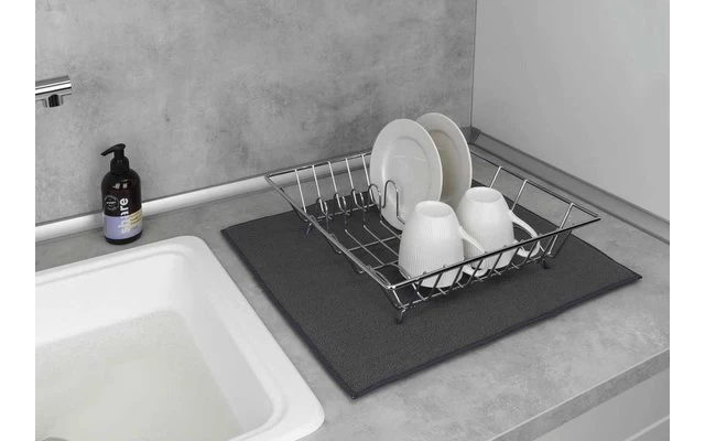 Auch die Matte ist schnelltrocknend. Die praktische Geschirr-Abtropfmatte ist flexibel einsetzbar und faltbar. So ist eine platzsparende Aufbewahrung garantiert.